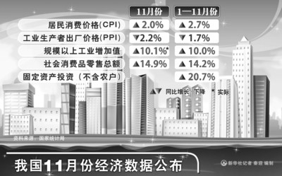 据测算,在11月份2.0%的居民消费价格总水平同比涨幅中,去年价格上涨的翘尾因素约为0.3个百分点,新涨价因素约为1.7个百分点。