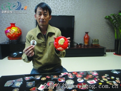 罗甸县(贵州省)下岗职工杨冰只要手中有闲钱,就会到处收集毛主席像章。20年间,他已经收集到16000枚。10月26日,记者见到他时,他说自己的最大愿望就是办个毛主席像章展。